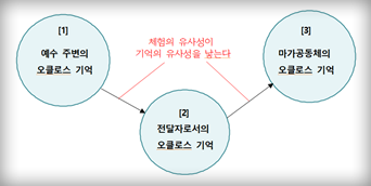 그런데 이 세 층위의 오클로스들의 기억이 어떻게 연속성이 있다는 것일까? 이때 그에게 힌트를 준 것은 타이쎈이다. 타이쎈은 현대구술연구를 참조하면서 구술의 경우 ‘경험의 유사성이 기억의 유사성을 낳는다’는 점을 활용하여 ‘유랑하는 카리스마적 예언자’ 유형의 예수활동가들이 예수의 급진적 말의 전승자라는 가설을 도출해 낸다.(38) 가족도 버리고 재산도 소유하지 않고 떠돌이 예언자로 살라는 예수의 급진적 말을 가족을 이루며 집을 소유한 정착자들이 전승하지는 않았을 것이기 때문이다.