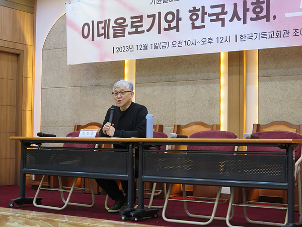 2023년 12월 1일, 크리스찬아카데미와 기윤실이 공동주최한 포럼 '이데올로기와 한국사회, 그리고 교회'(오전 10~12시. 조에홀)가 있었다. 김호기 교수가 발제를 했고, 신학 부문, 역사 부문, 사회 부문에서 한 명씩 논평자로 참여했다. 역사 부문 토론자는 홍문기 총신대 역사교육과 교수가, 사회 부문은 조성실 시사평론가가, 그리고 신학 부문은 내가 맡았다. 윤석렬 정부의 최근 극우적 이념으로 정국을 드라이브하는 현상을 염두에 둔 주제로 보인다. 지금 한국사회에서 필요한 문제의식의 하나를 점검해보겠다는 취지인 듯하다. 오프라인 참여자나 온라인 참여자가 너무 적었다. 아마도 이벤트의 사회가 되어 버린 한국의 담론 지형에서, 제목이 너무 이벤트답지 못한 것이 그 한 이유가 아니었을지. 아무튼 바쁜 중에 열심히 애쓴 두 주관단체 담당자들의 노고에 경의를 표한다.